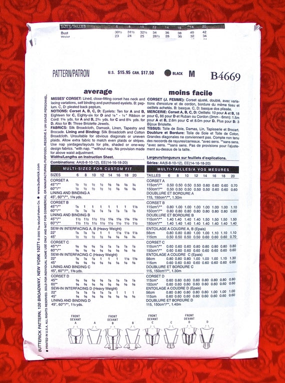 Amazon Com Butterick Patterns B4669 Misses Corset Size Ee 14 16 18 20 Arts Crafts Sewing