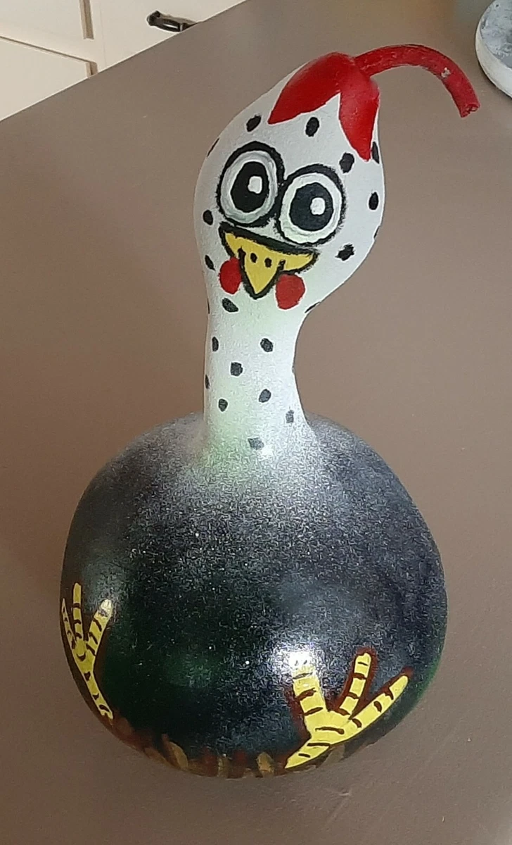 Chicken Hand Painted Gourd Black Polka Dotted White Yellow Red Folk Art Ebay